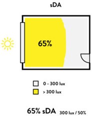 65% از مساحت فضا، در حداقل 50% اوقات اشغال فضا، بیش از 300 لوکس نور روز دریافت میکند.